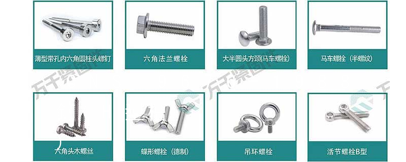 螺栓有:1、方頭螺栓,2、半圓頭方頸螺栓,3、十字槽盤頭螺釘,4、內(nèi)六角沉頭螺釘,5、方螺母C級(jí),6、蝶形螺母,7、六角頭螺栓,8、十字槽盤頭自攻螺釘。大小有M18、M6、M8、M16、M10、M12、M14、M20等型號(hào)。通常用