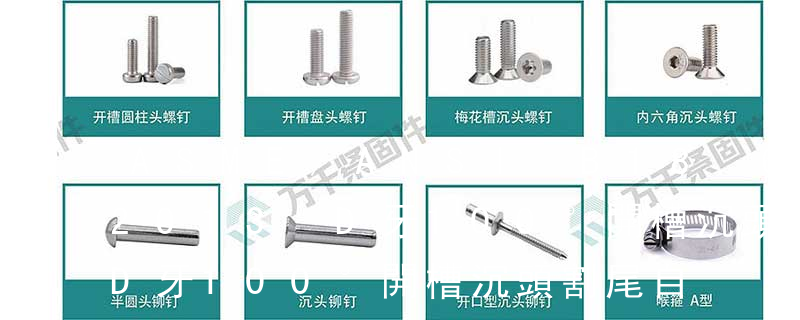 1、Flat:平頭 (鎖入后,頂部與工作件齊平)2、Oval:色拉頭、O頭、半沉頭 3、Round:圓頭 4、Pan:圓扁頭 5、Truss:大圓扁頭 6、Hex:六角頭 A-5:Finish Code/外觀處理。公制自攻螺絲 :于品名后方直接標(biāo)示 Tapp 主要分類包括普通螺絲、機(jī)螺絲、自攻螺絲和膨脹螺絲三種。有頭螺釘Cap screw 過去限于全牙的扣件。六角頭螺釘Hex cap screw與大六角螺栓Hex bolt 顧名思義為頭部為六角型的外螺紋扣件,設(shè)計(jì)為使用扳手轉(zhuǎn)動(dòng)。依照ASME B18.2.
