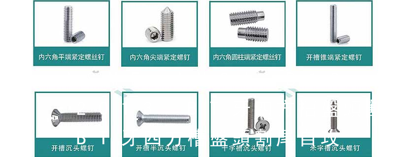 槽型:1.一字2.內三角3.內角四方4.十字5.米字6.花形7.梅花形8.花形一字9.特形10.內六角英文名稱十字槽盤頭組合機絲牙螺釘 采用的是GB818 Cross recessed pan head Combination screws十字槽盤頭機絲牙螺釘 采用的是GB818 Cross Hexagon head bolts with fine pitch thread full thread六角頭螺栓 細牙 全螺紋 Hexagon flange bolts –heavy series-product grade B 六角法蘭面螺栓 加大系列車員 B級 Cross recessed pan head tapping screws 十字槽盤頭自攻螺釘 Hex